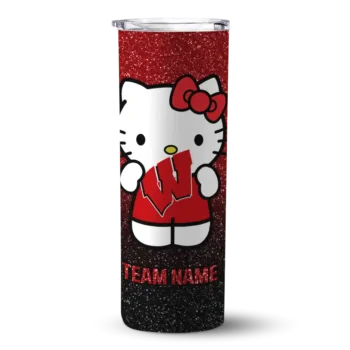 Personalized Wisconsin Badgers Hello Kitty Red Black Skinny Tumbler $28.99