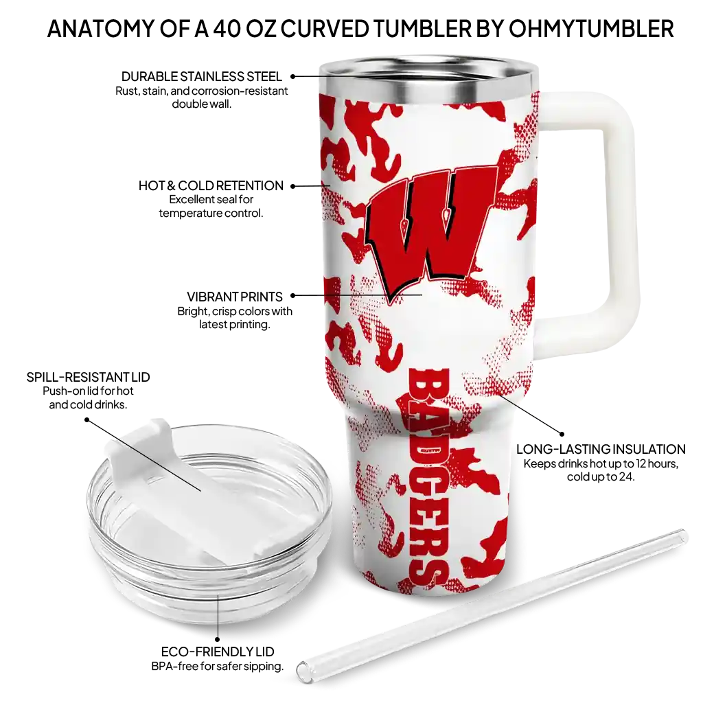 Say hello to the Wisconsin Badgers Tumblers from NCAA Fan Pro —the perfect tumbler for diehard Wisconsin Badgers fans who want more than just a drink container. Built from durable stainless steel with sleek rounded corners, this tumbler isn't just about keeping your drink at the right temperature—it’s built to last and show off your team spirit. The generous 40oz size makes it the perfect match for long games, tailgates, or any adventure where hydration is key.