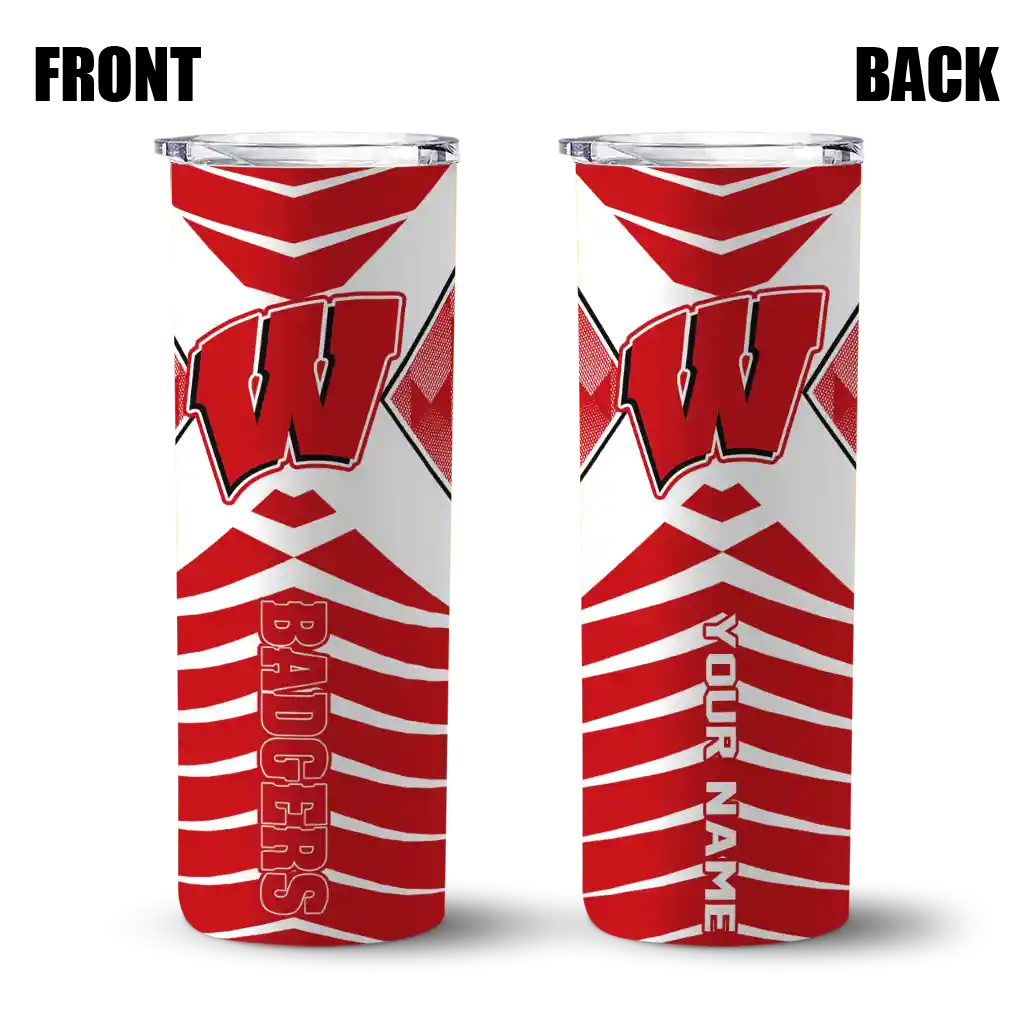 The Custom Wisconsin Badgers Camo Texture Red Skinny Tumbler tumbler is the perfect way to stay refreshed while showing off your pride for Wisconsin Badgers. With its double-wall insulation, your drinks stay at the right temperature for hours, whether you're enjoying a hot coffee or keeping your iced drink cold. What's inside? You’ll find 1 stainless steel tumbler, 1 clear lid, and 1 removable straw. It's the perfect blend of function and fan spirit! Ergonomically designed for comfort, made from durable stainless steel, and insulated to maintain your drink’s temperature, this tumbler is a must-have for any dedicated NCAA fan.