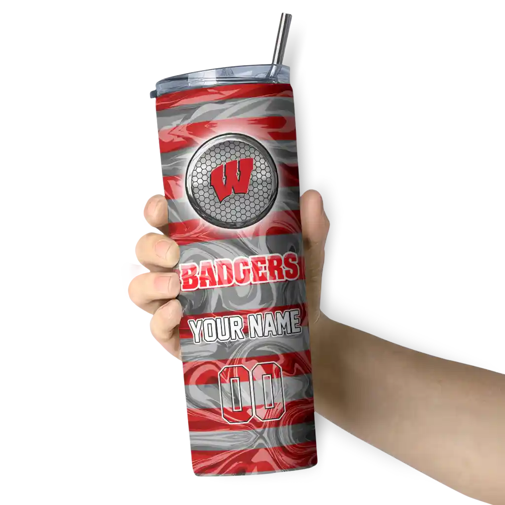 No question about it—the Custom Wisconsin Badgers Hex Texture Red Curved Tumbler is the ultimate way to stay refreshed while rocking your Wisconsin Badgers pride. From the stadium to your tailgate, or just chilling at home, this sleek tumbler makes sure you stay hydrated in style. What’s in the box? A stainless steel tumbler, clear lid, and removable straw—all the essentials for keeping your favorite drinks on point!