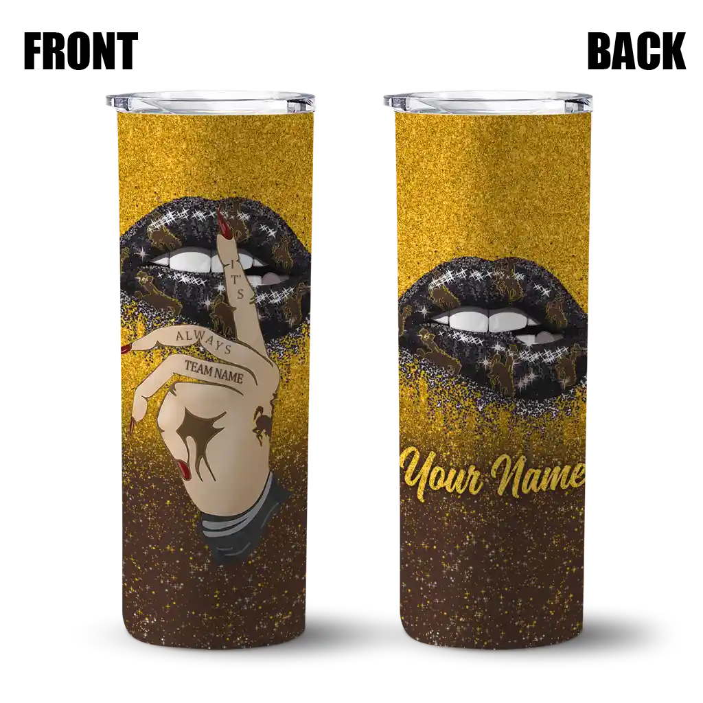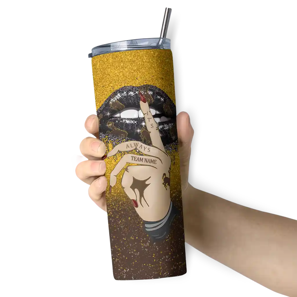 Customized Wyoming Cowboys Sparkle Lips Brown Skinny Tumbler