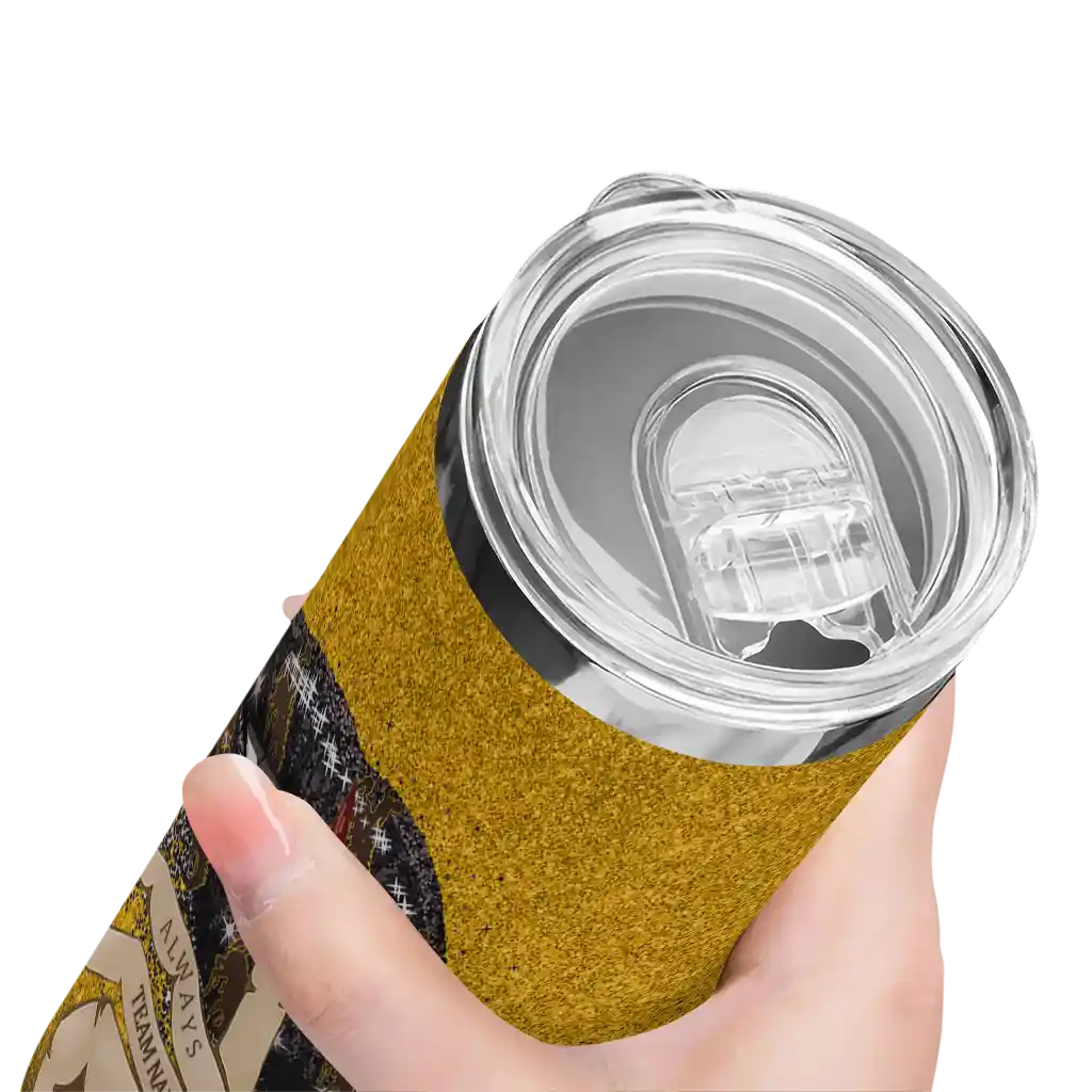 The Customized Wyoming Cowboys Sparkle Lips Brown Skinny Tumbler tumbler is the perfect way to stay refreshed while showing off your pride for Wyoming Cowboys. With its double-wall insulation, your drinks stay at the right temperature for hours, whether you're enjoying a hot coffee or keeping your iced drink cold. What's inside? You’ll find 1 stainless steel tumbler, 1 clear lid, and 1 removable straw. It's the perfect blend of function and fan spirit! Ergonomically designed for comfort, made from durable stainless steel, and insulated to maintain your drink’s temperature, this tumbler is a must-have for any dedicated NCAA fan.