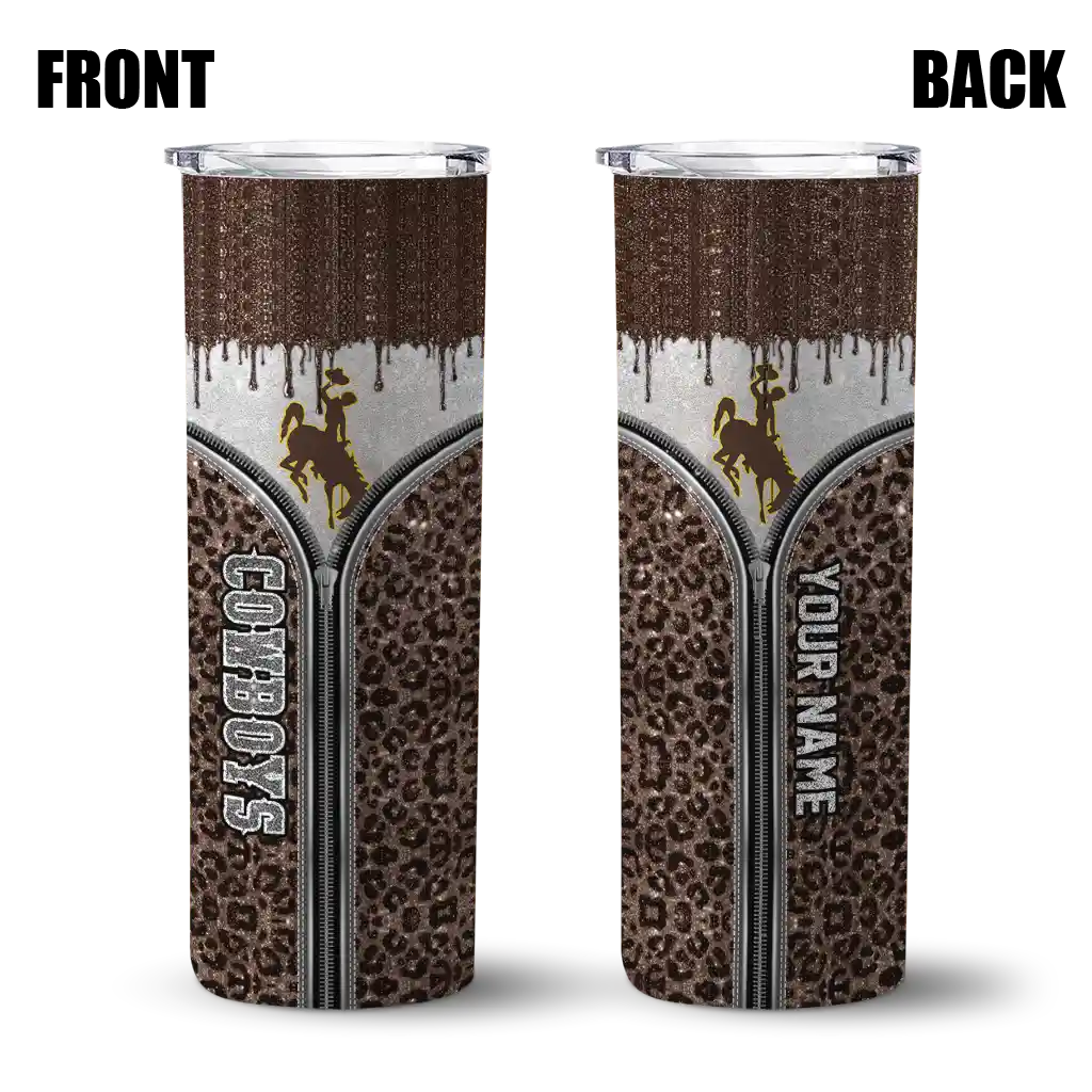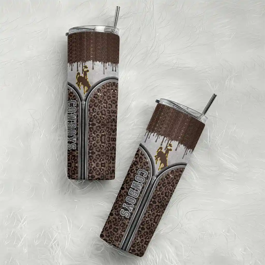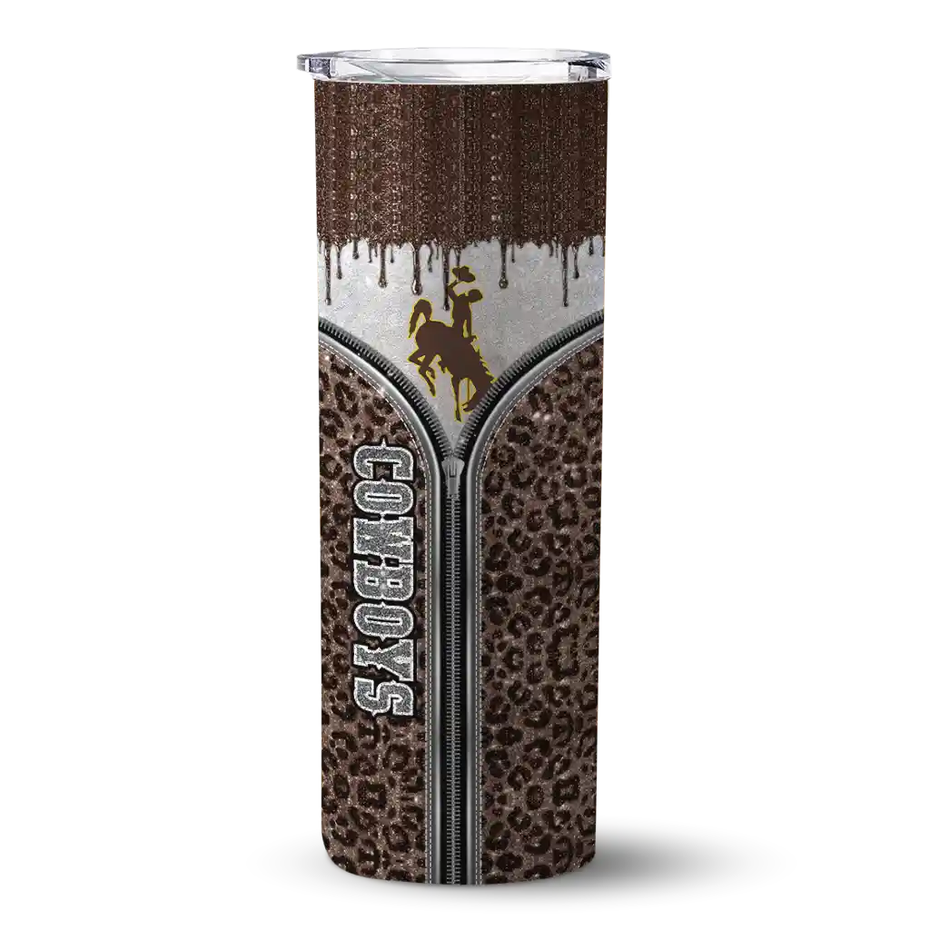The Personalized Wyoming Cowboys Sparkle Drip Brown Skinny Tumbler tumbler is the perfect way to stay refreshed while showing off your pride for Wyoming Cowboys. With its double-wall insulation, your drinks stay at the right temperature for hours, whether you're enjoying a hot coffee or keeping your iced drink cold. What's inside? You’ll find 1 stainless steel tumbler, 1 clear lid, and 1 removable straw. It's the perfect blend of function and fan spirit! Ergonomically designed for comfort, made from durable stainless steel, and insulated to maintain your drink’s temperature, this tumbler is a must-have for any dedicated NCAA fan.